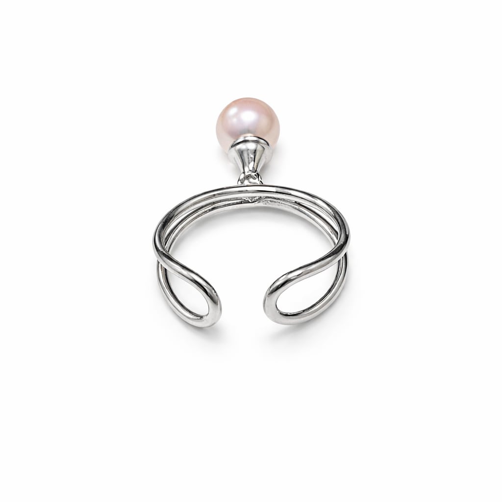 自然な光沢を放つ真珠と、シャープなシルエットのシルバーが組み合わさることで、シンプルながら存在感のあるデザインに仕上がりました。