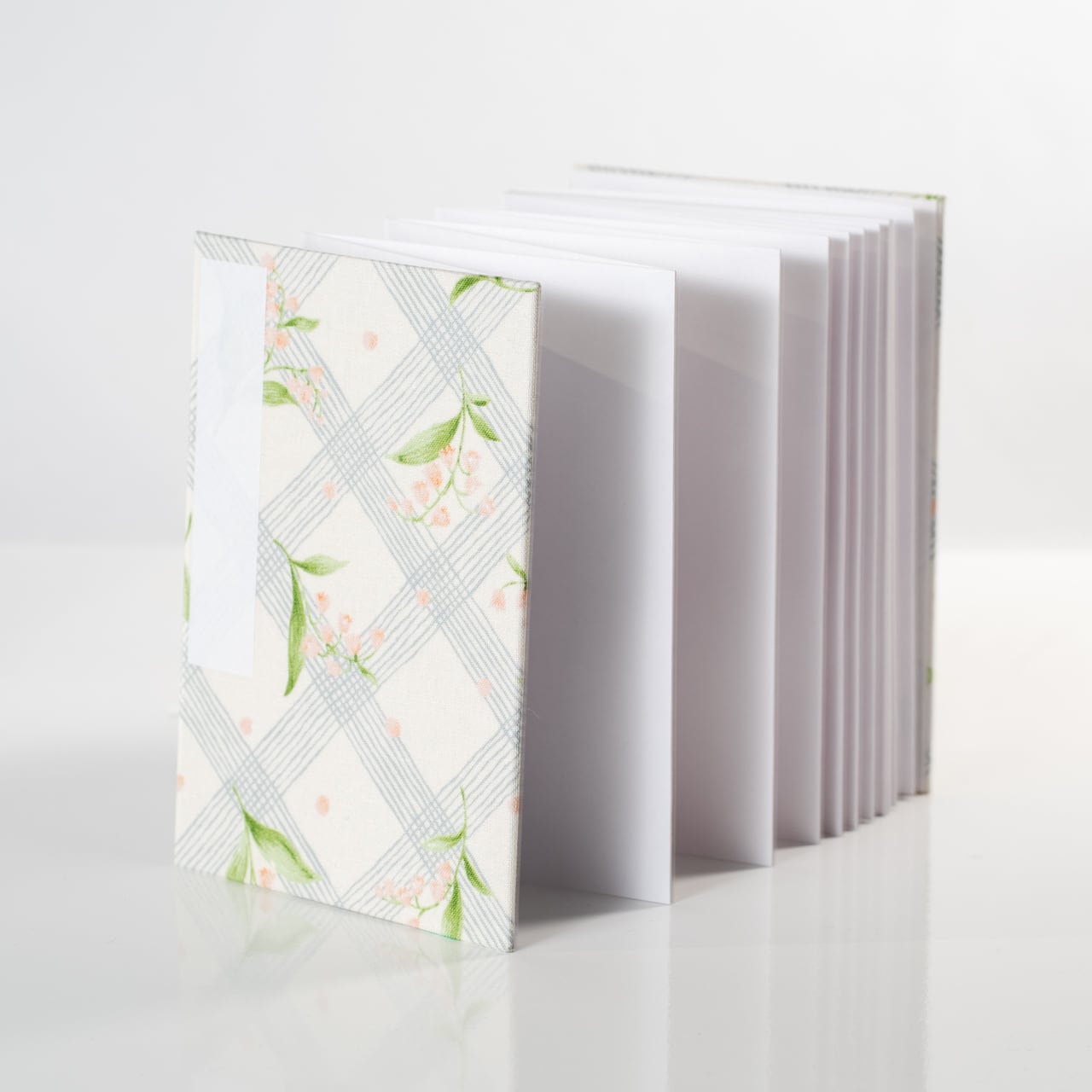 鈴蘭(すずらん)の花言葉「幸福の再来」「純粋」「謙虚」をイメージにした、心温まる御朱印帳です。手書き風の優しいチェック柄とスズランの繊細なイラストが融合し、持つだけで心が穏やかになるようなデザインに仕上げました。