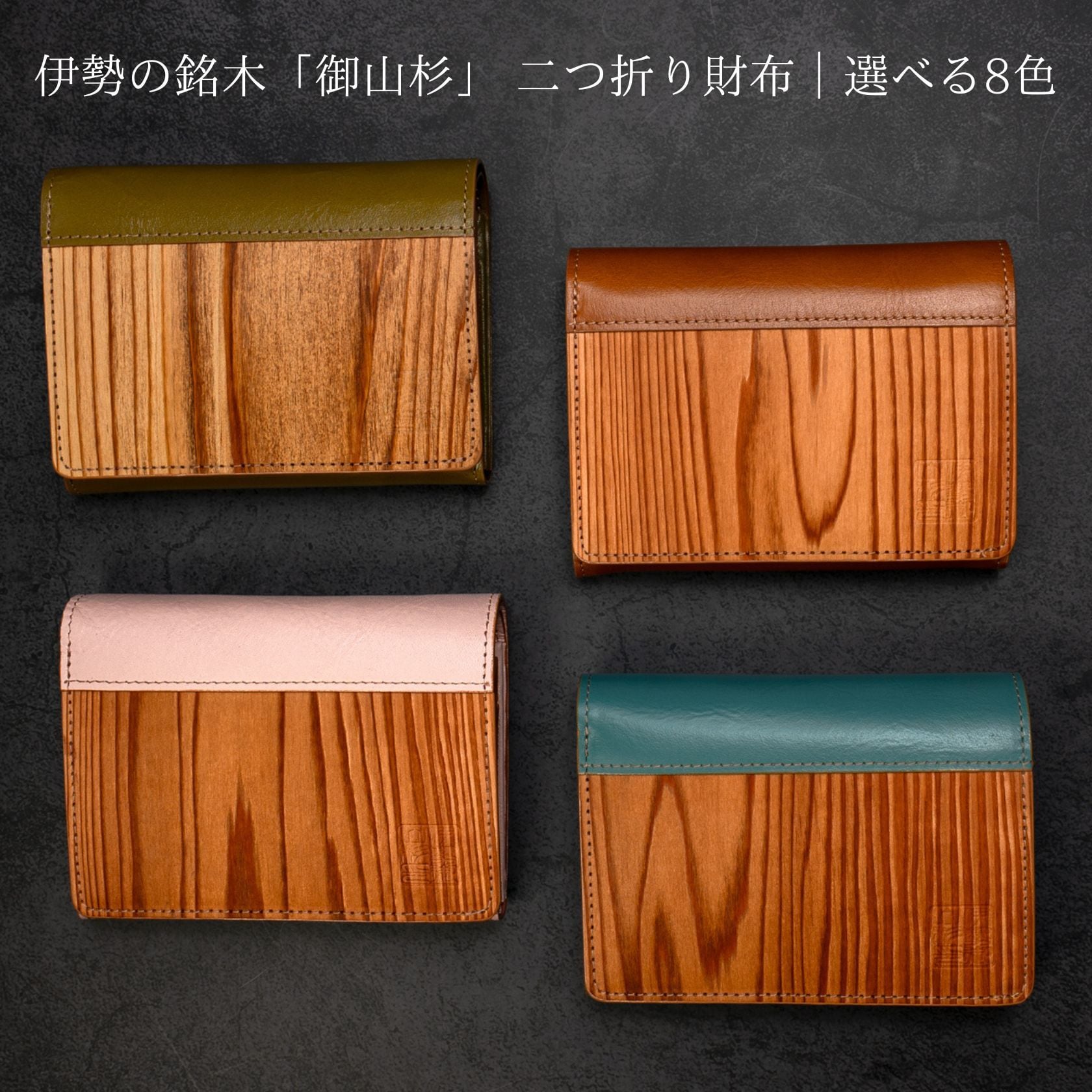 「日本の伝統と匠の技が融合した逸品 | 伊勢の銘木「御山杉」を使用した二つ折り財布
