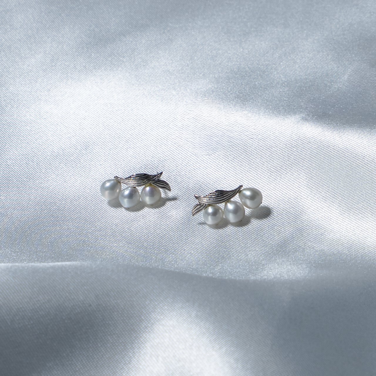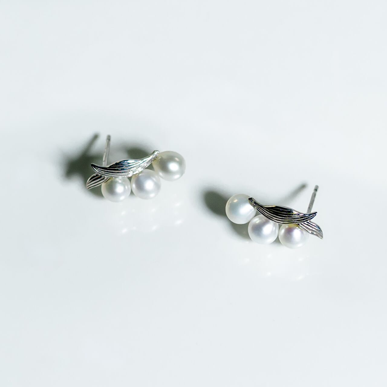 可憐な鈴蘭(すずらん)をイメージした、淡水真珠の上品なピアスです。小さな3粒の真珠が鈴蘭の花房のように寄り添い、耳元をさりげなく華やかに彩ります。葉の部分は繊細な彫りを施したシルバーカラーで、シンプルでありながら可憐さと上品さを両立させたデザインです。