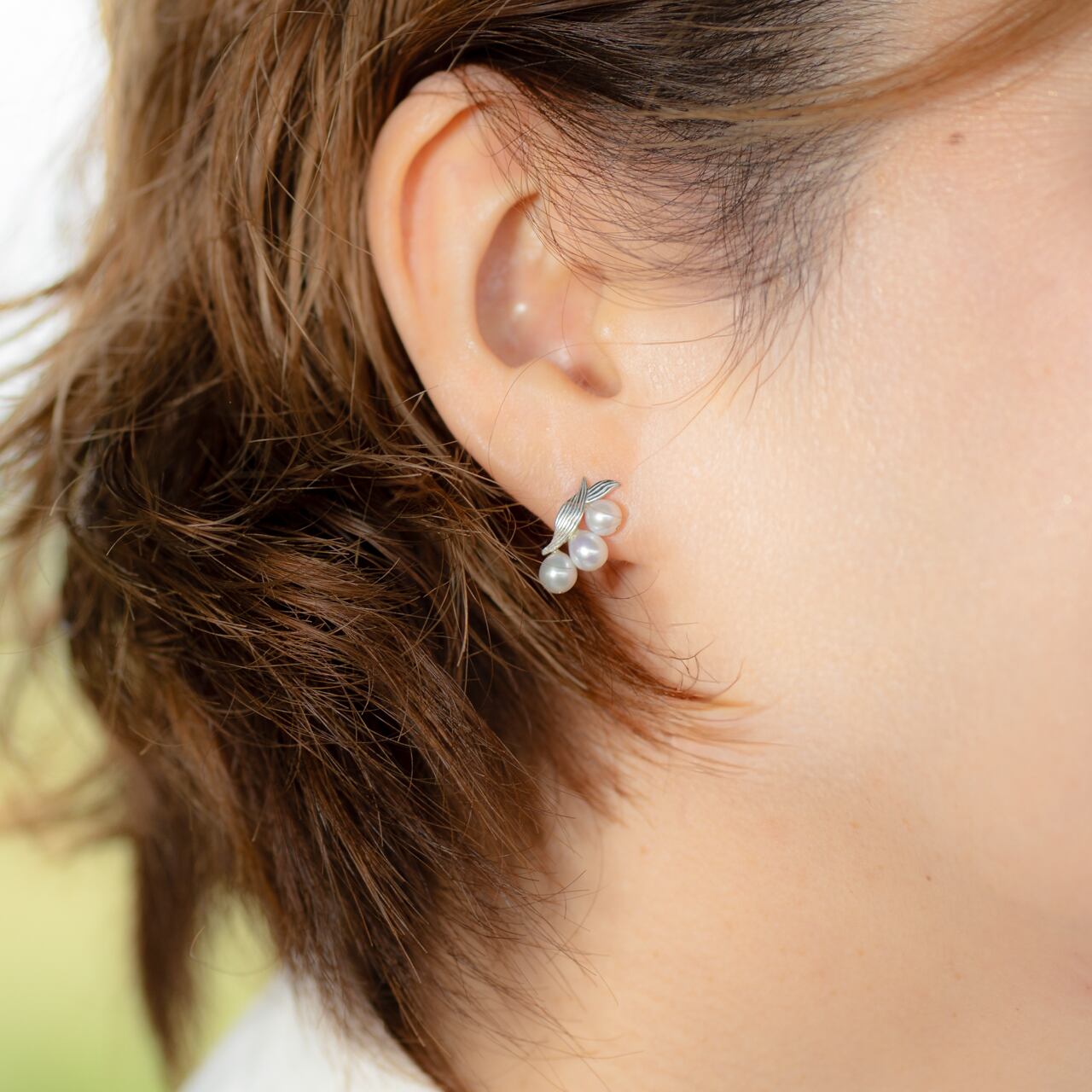 耳元に小さな幸せを咲かせる、鈴蘭のような淡水真珠ピアス。あなたのコーディネートに優しい華やかさを添えてくれます。