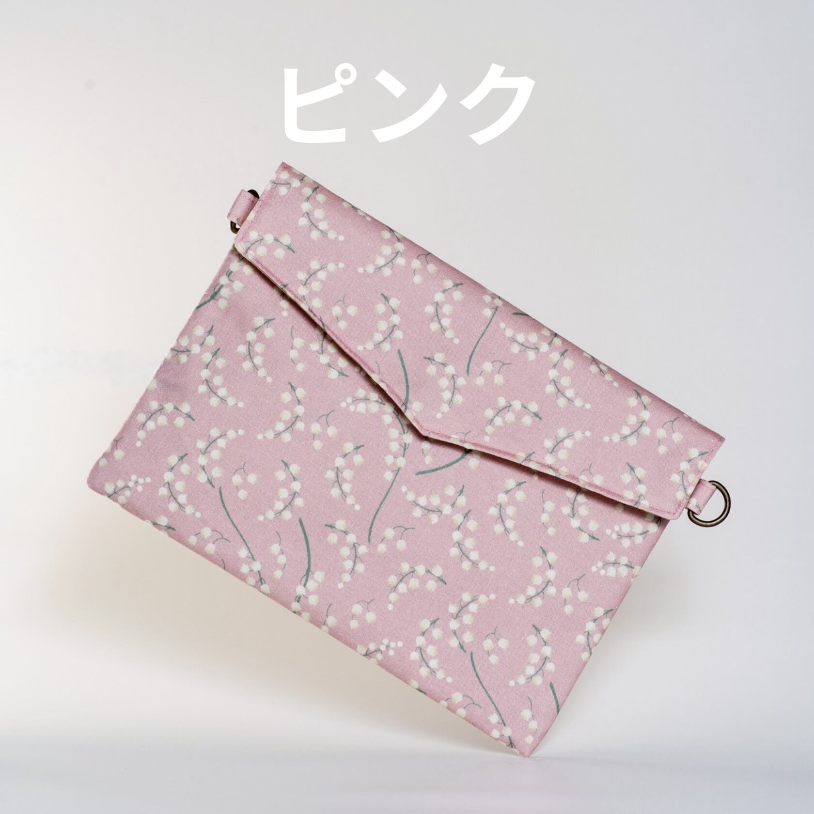 御朱印帳袋 すずらん|選べる4色(ピンク/グリーン/水色/ベージュ)撥水ナイロン×綿 日本製 サコッシュ対応 Dカン付き 和柄 プレゼントにも