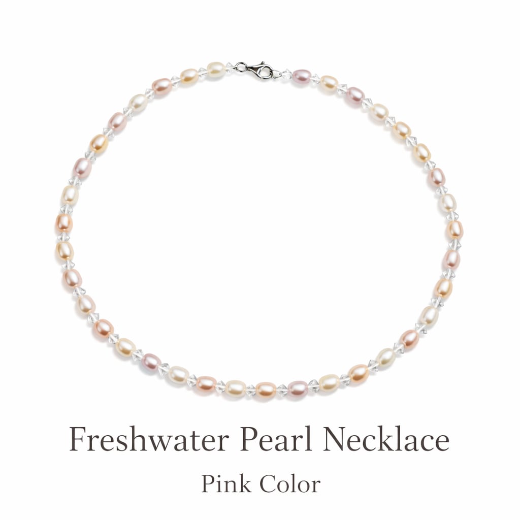 淡水真珠の優美な輝きが際立つ、魅力的なネックレスです。粒サイズは6.5mmで、しっかりとした存在感ながらも、上品さを失わないデザインとなっています。ホワイトカラーとピンクカラーの2色からお選びいただけるため、お好みやシーンに合わせた演出が可能です。