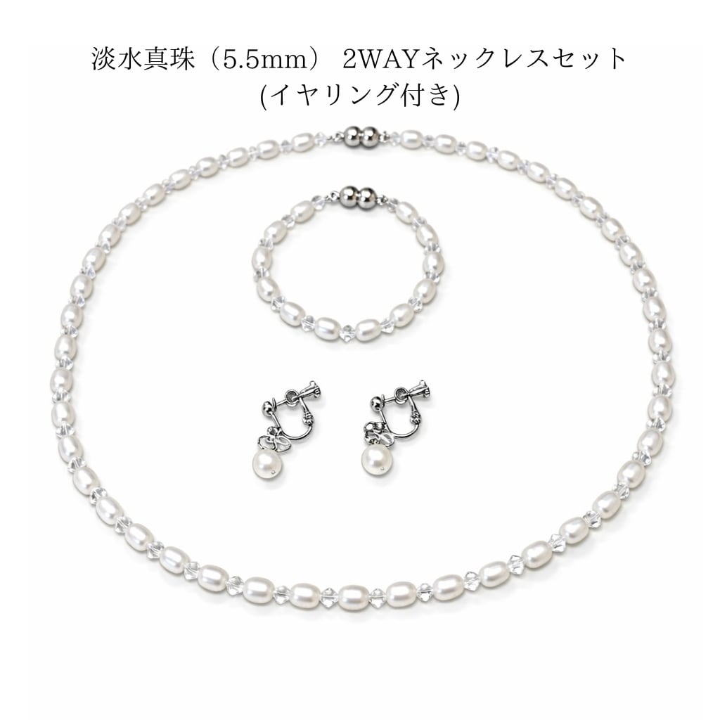 淡水真珠のやさしい輝きを楽しめる、上品で実用的なアクセサリーセットです。