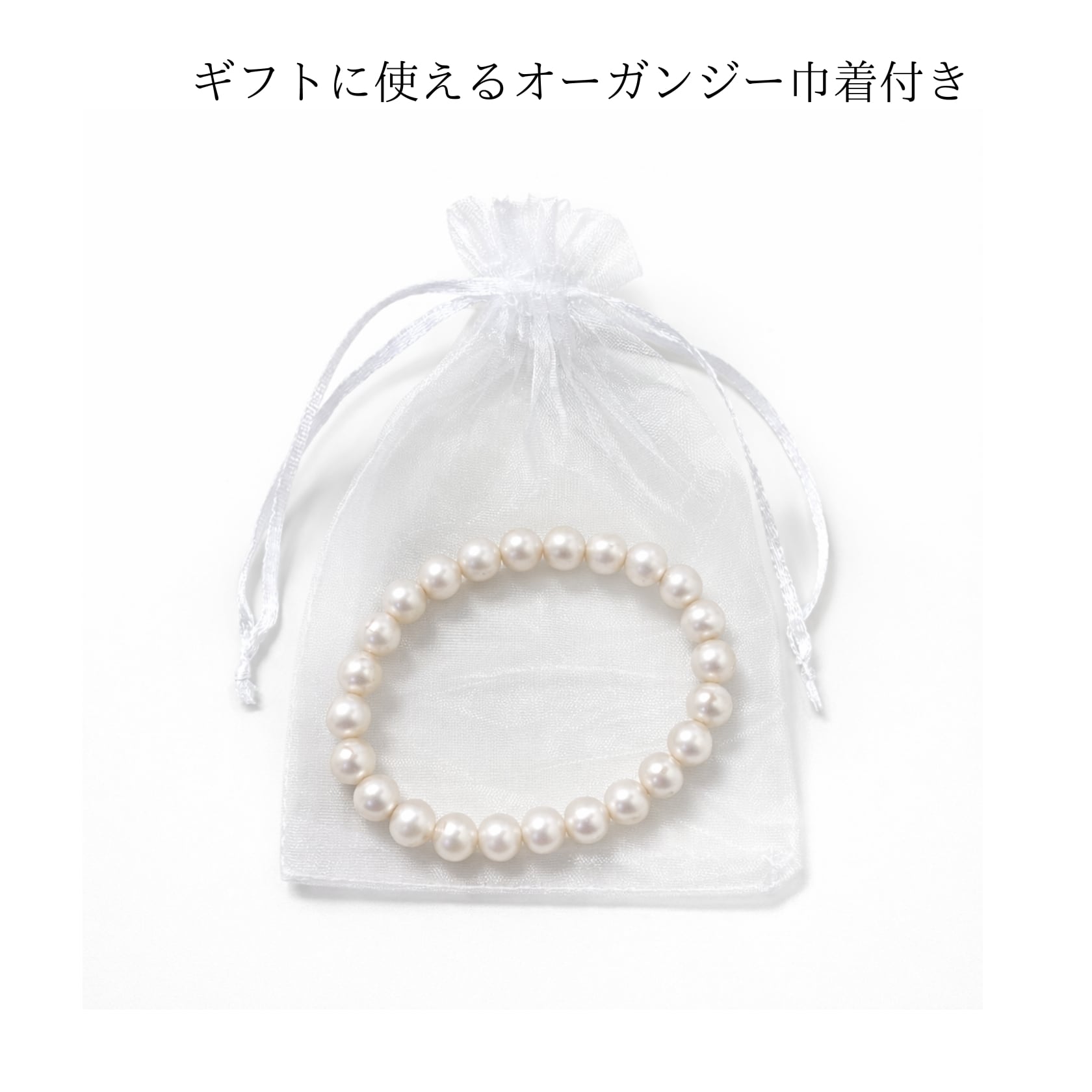 ゴム仕立てのため金具がなく、パールの美しさをシンプルにお楽しみいただけます。