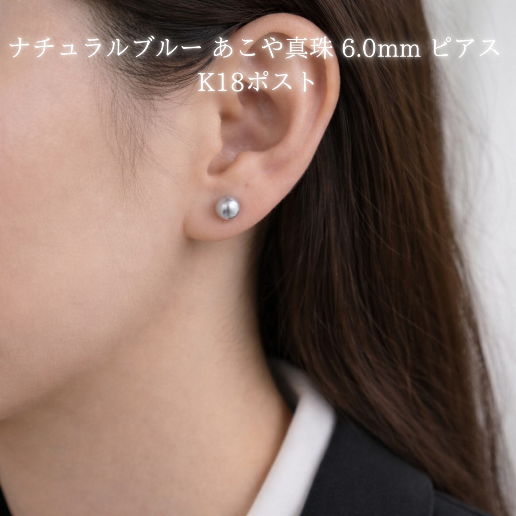 控えめでありながら確かな美しさを放つ、あこや真珠のナチュラルブルーピアス。
