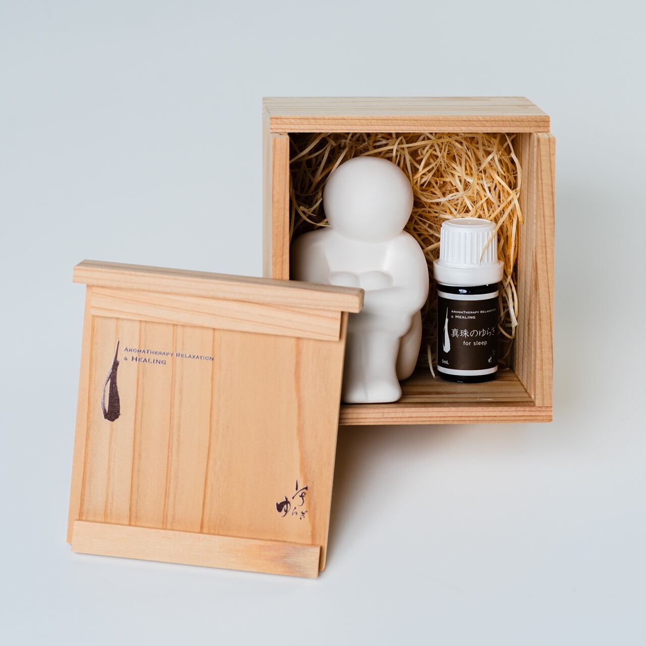 伊勢のゆらぎ アロマオイル&人型ディフューザーセット 5ml|伊勢志摩イメージ 100%天然精油 三重県産ひのき配合|AEAJ認定セラピスト調香 ギフトにも