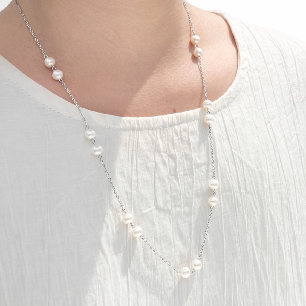 パーティーや結婚式などフォーマルなシーンはもちろん、普段の装いにも合わせやすく、首元を優雅に演出。67cmのロングタイプなので、1本で印象的なコーディネートが完成します。