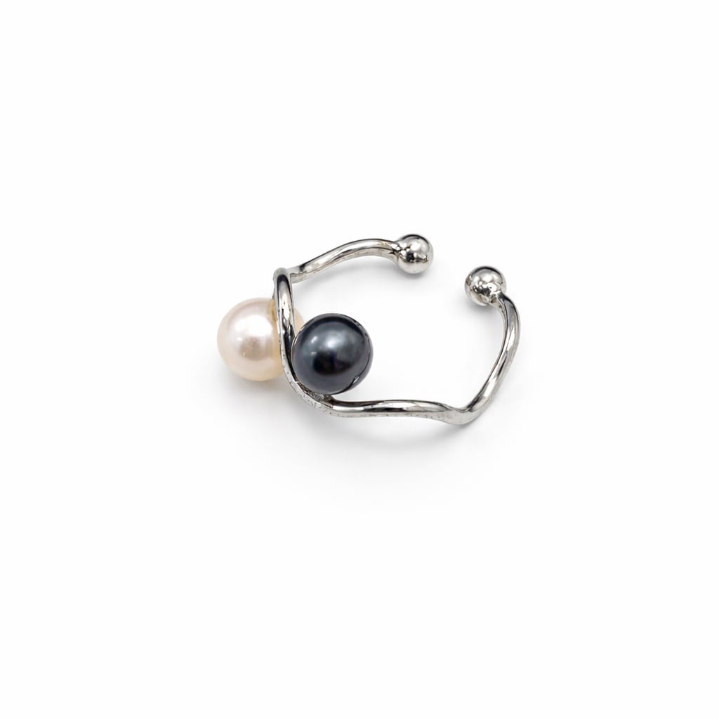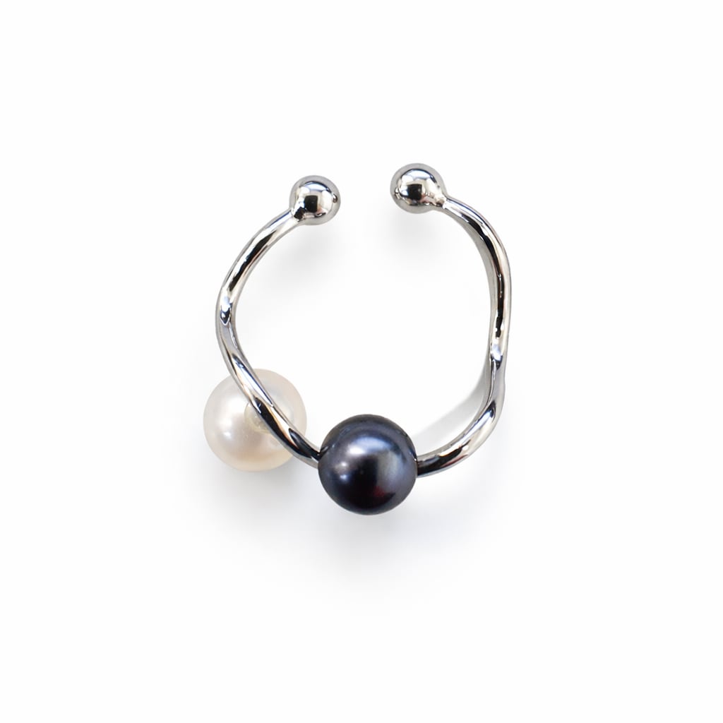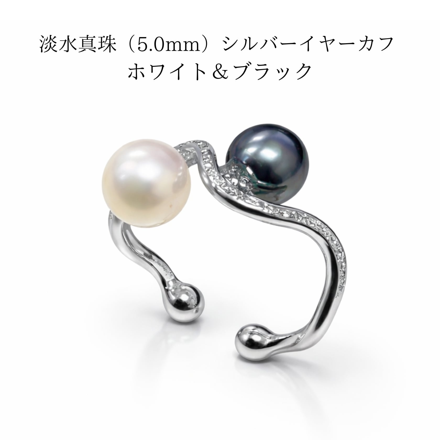 ホワイトとブラック、2色の淡水真珠(各5.0mm)が美しく寄り添うシンプルなシルバーイヤーカフ。